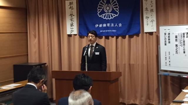 11月18日の経営者モーニングセミナーは、天神倫理法人会の専任幹事 藏前 雅之氏に「倫理と家庭と仕事」というテーマにてご講話をいただきました。